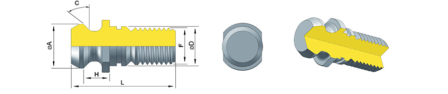 - • Cimentées, trempées, revenues avec dureté HRC 56÷60; filetage protégé par la cimentation, dureté HRC45;